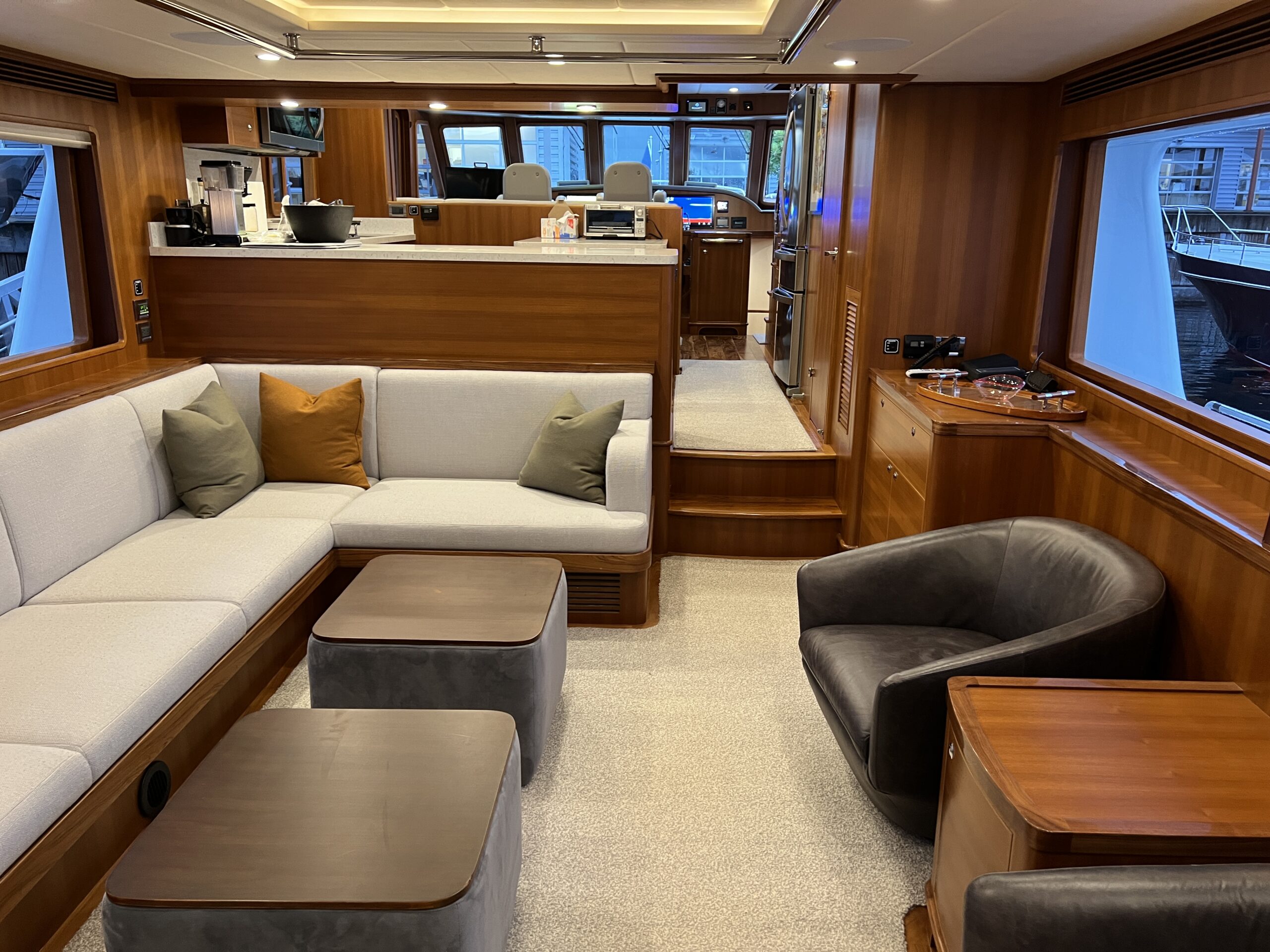 Beautiful 72’ 2021 Outerreef Motor Yacht available for charter. With three comfortable state rooms, all en suite, there is plenty of room for 3 couples or large family. There is a dining area in the helm area, al fresco both on the aft deck and bow, or in the fully enclosed fly bridge. An outdoor bbq, and pizza oven, round out the fully equipped kitchen.There is a 14’ tender with 70 hp engine to get around, as well as a Sea Doo, and full diving equipment including tanks.